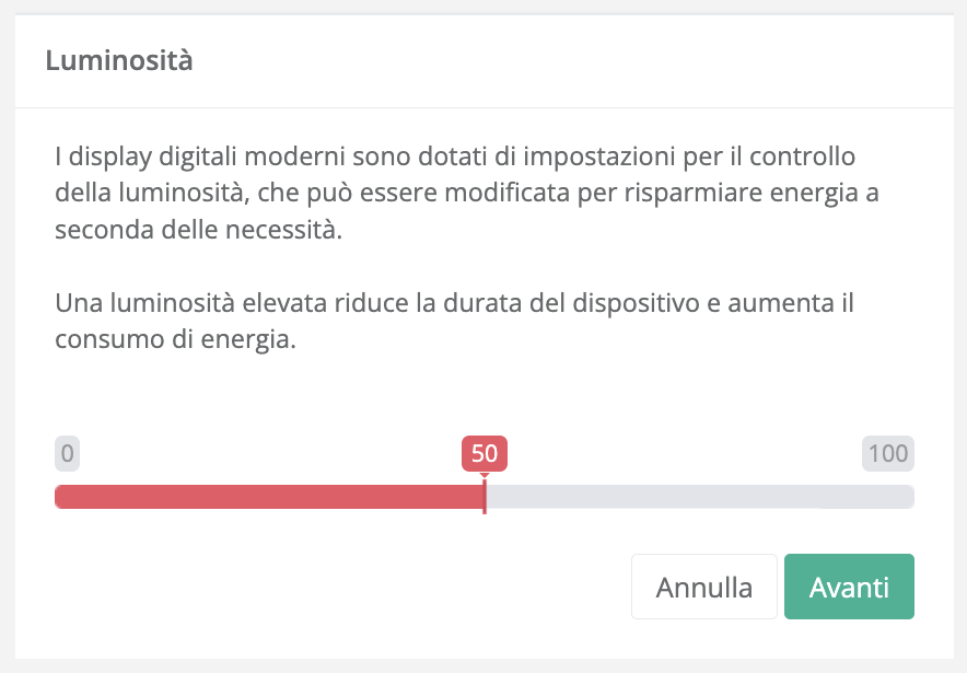 Imposta il valore di luminosità desiderato mediante lo slider slider da 0 a 100 (predefinito 50).