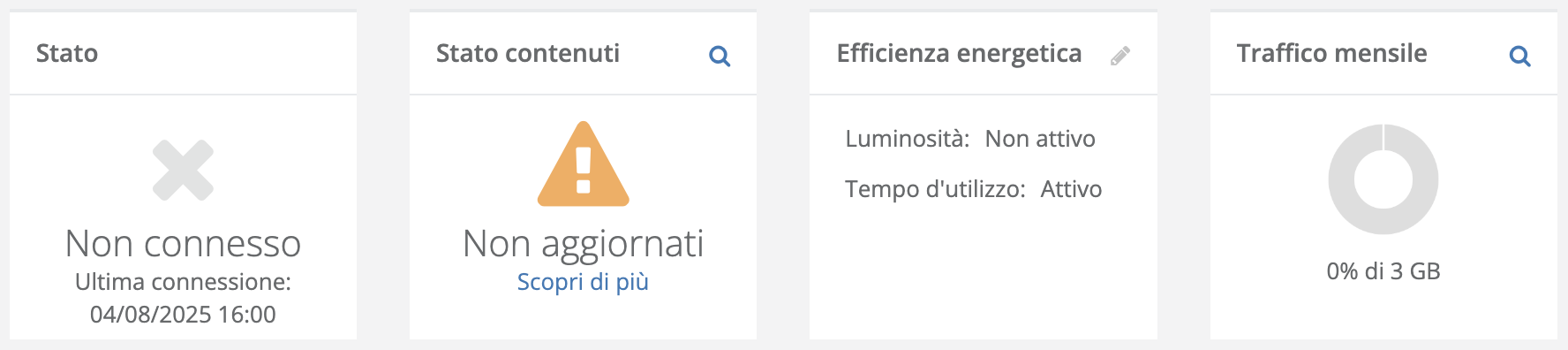 - Aggiorna dispositivo → pianifica l’aggiornamento del software sul player.