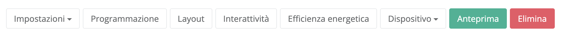 Nella parte alta della schermata di dettaglio di ogni player, sono presenti i pulsanti principali per operare sul player: