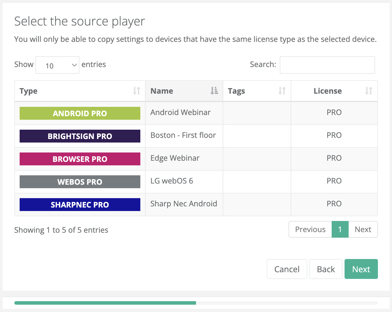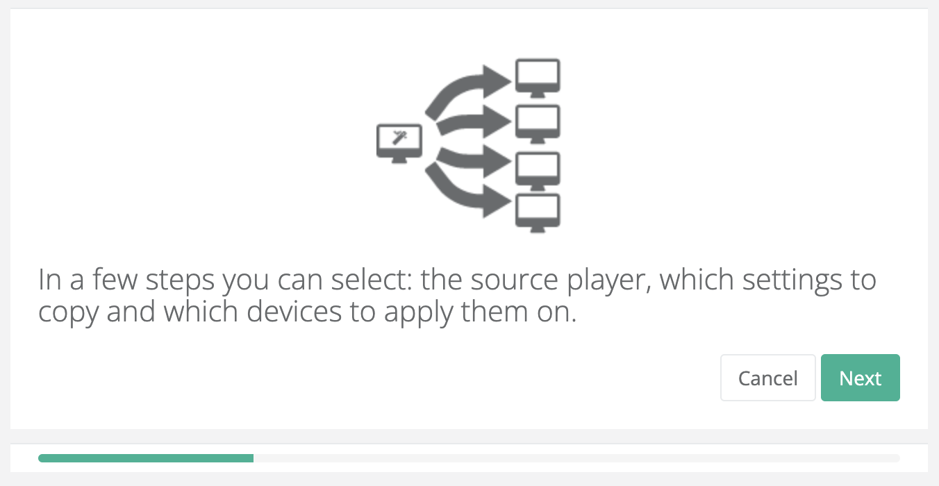 The Configuration Copy feature allows you to quickly replicate the settings of an already configured player onto another device, avoiding the need to re-enter them manually.